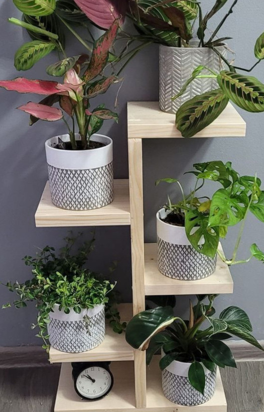 جنس کار چوب روسی ابعاد کلی کار ارتفاع ۶۰سانت.عرض قفسه ها ۱۵ سانت کفی پایین کار ۵۰ سانت قفسه ها هرکدام ۲۳سانت مناسب برای گل های کوچک ورومیزی