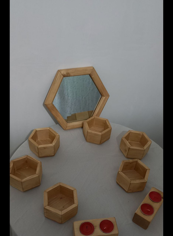 هفت سین تمام چوب روسی.بارنگ قهوه ای کم رنگ.یک عدد آینه ۶ظلعی.۶عدد پیاله هفت سین.ودوعد جایه شمع وارمردار.آینه بدون پایه وساده.روندآماده سازی این محصول۴روز است ماتولید کننده هستیم