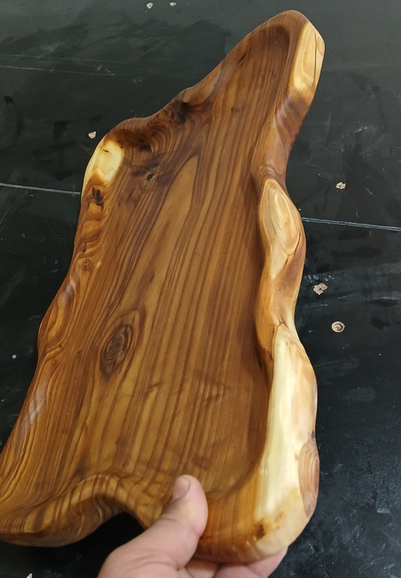 سینی چوبی دفرمه چوب سنجد باپوشش روغن گیاهی ابعاد کلی کار ۳۰در۴۰ کاردست.