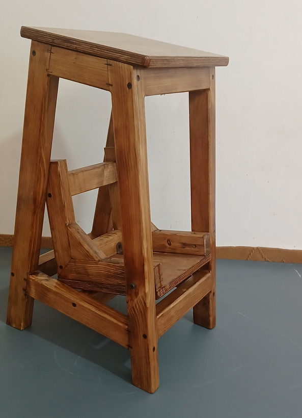 چهارپایه پله دار چوبی تاشو جنس کار چوب روسی درچهاررنگ باپوشش نیم پلی استربراق.ابعاد کار ارتفاع ۶۰ سانت .کفی رویی ۲۵ در۳۰.اندازه پله ۲۳ سانت بسیارمحکم وبادوام مناسب برای آشپزخانه.به دلیل تاشو بودن محیط کمی رااشغال میکنید.روندآماده سازی محصول ۵روز است.