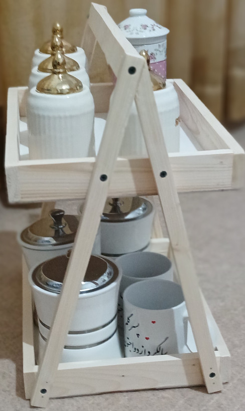 استندپاسماوری آشپزخانه جنس چوب روسی ابعاد ۲۲در۳۵سانت درارتفاعد۴۲سانت فاصله بین طبقات ۲۵سانت. استندپاسماوری چوبی درواقع یک استند همه کاره درآشپزخانه شماست.که هرنوع وسیله ای که روزانه درآشپزخانه باان سروکاردارید رانظم می بخشد که هم دسترسی به آن ها آسان میشود وهم زیبایی خاصی به آشپزخانه شما میبخشد.فقط استند خالی بدون محتویات داخل