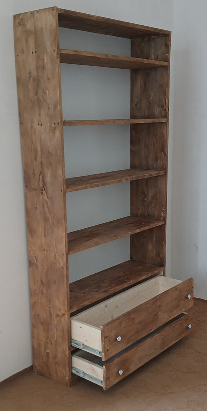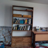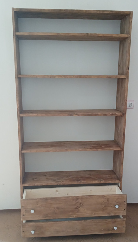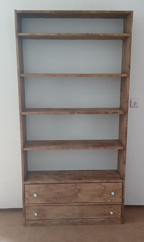 کتابخانه وکمد تمام چوب روسی رنگ شده باشاپان دردورنگ رنگ چوب و رنگ قهوه ای .ابعاد کار ارتفاع کار ۲متر درعرض۱متر در عمق ۳۰ سانت دارای دوعدد کشو یکی ۱۵سانت ودومی۲۰ سانت داخله کشو ۲۲در۹۰ سانت. فاصله طبقات هر طبقه۳۱ سانت کارتمام چوب روسی .پشت کارباچوب سه میل بسته وفیکس شده.ماتولید کننده هستیم وروند آماده سازی این محصول ۷روز میباشد.